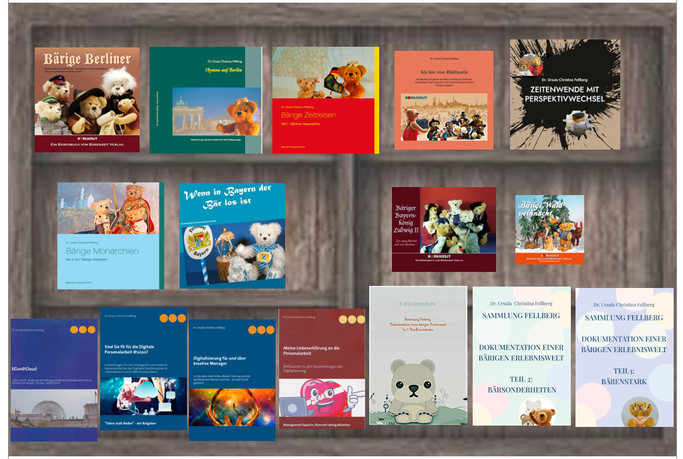 Über den privaten Selbstverlag "Bärenzeit Verlag München" publiziere ich meine Bücher: Druckdateien werden selbst erstellt (Text, Fotos, Layout), gedruckt und veröffentlicht über BoD (Books on Demand). Die Bücher sind auch über Amazon, Thalia und andere Online Dienste zu erwerben.